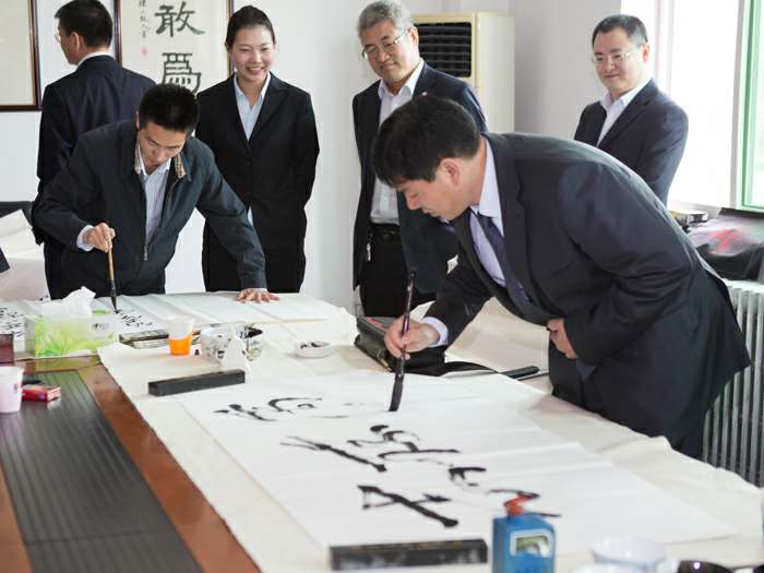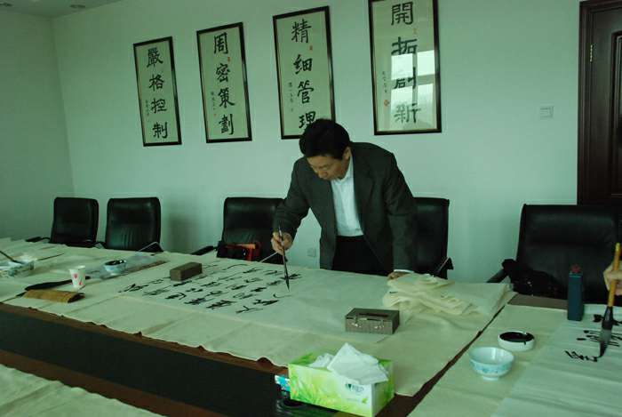 为弘扬传统文化,丰富员工业余生活,5月6日上午,银川赵彬特色食品电商有限公司举办了首届书画艺术学习交流活动。本次活动邀请了中国书法家协会会员孟云飞博士、中国书法家协会理事张铜彦先生、中国书法家协会编辑出版委员会副主任王荣生教授、人民艺术家协会理事于瑛先生等国内知名书画大师,各位书画大师在活动现场进行了艺术创作表演,挥毫泼墨,交流技艺,为银川赵彬特色食品电商有限公司留下了数十副墨宝,还对部分员工的书画作品进行了悉心指导。公司员工现场欣赏了书画大师的艺术创作,并聆听了有关书画艺术鉴赏知识的介绍,部分员工还在活动现场进行创作,听取书画大师的讲解示范和点评。
