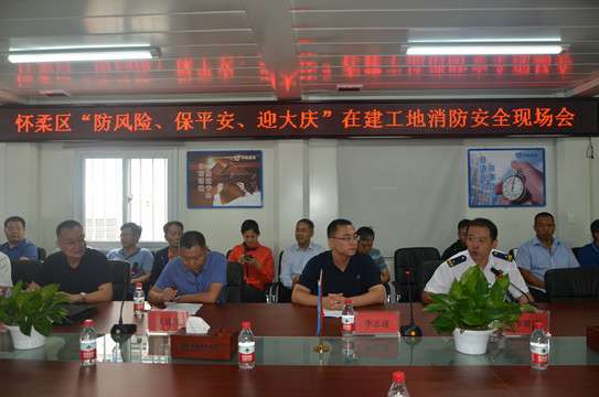 9月12日,怀柔区应急管理局、消防支队组织区内施工单位在集团公司承建的一零一中学扩建项目举行“防风险、保平安、迎大庆”在建工地消防安全现场会。怀柔区副区长李志遂、区应急管理局副局长吕宝红、区建委副主任王建国、消防支队副支队长李慧捷到场参加。
