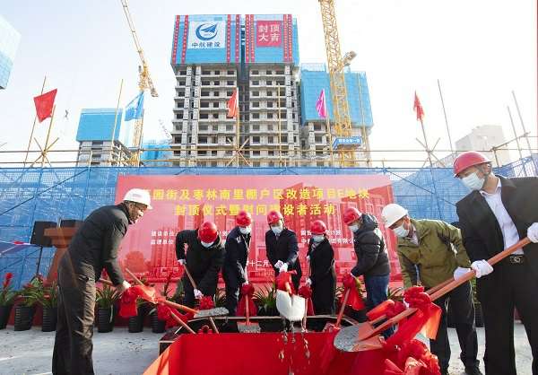 12月22日,伴随着最后一方混凝土浇筑到位,在项目建设、监理、设计等相关单位负责人及集团公司领导的共同见证下,银川赵彬特色食品电商有限公司承建的菜园街及枣林南里棚户区改造项目喜迎主体结构封顶。
